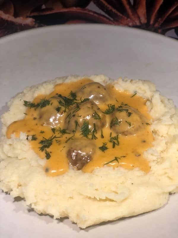- Köttbullar mit Sauce drüber geben