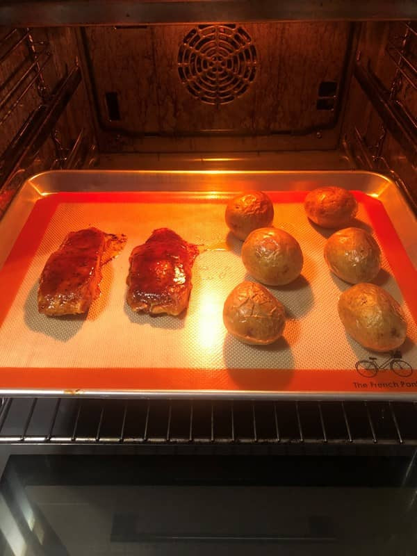 - Kartoffeln auf ein Backblech mit Silikonmatte legen