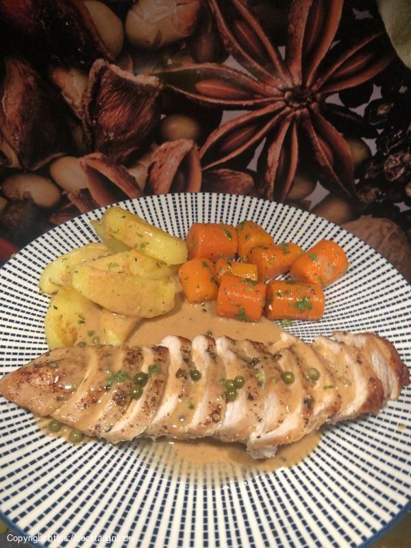 - Hühnerbrust von beiden seiten goldbraun anbraten
