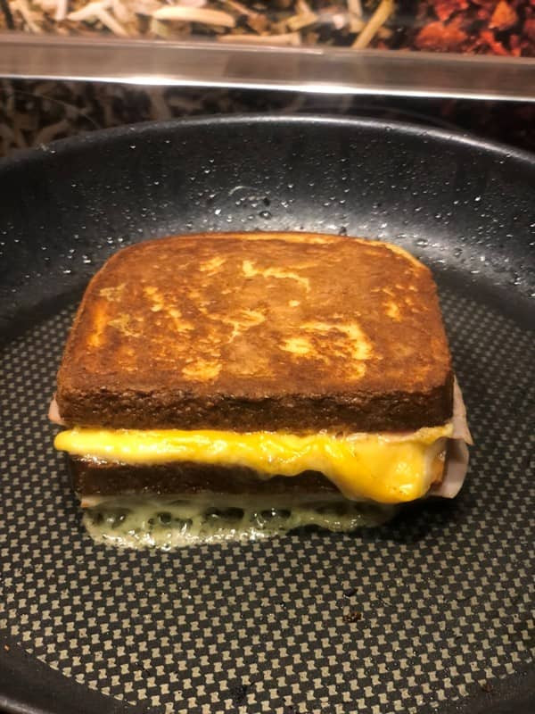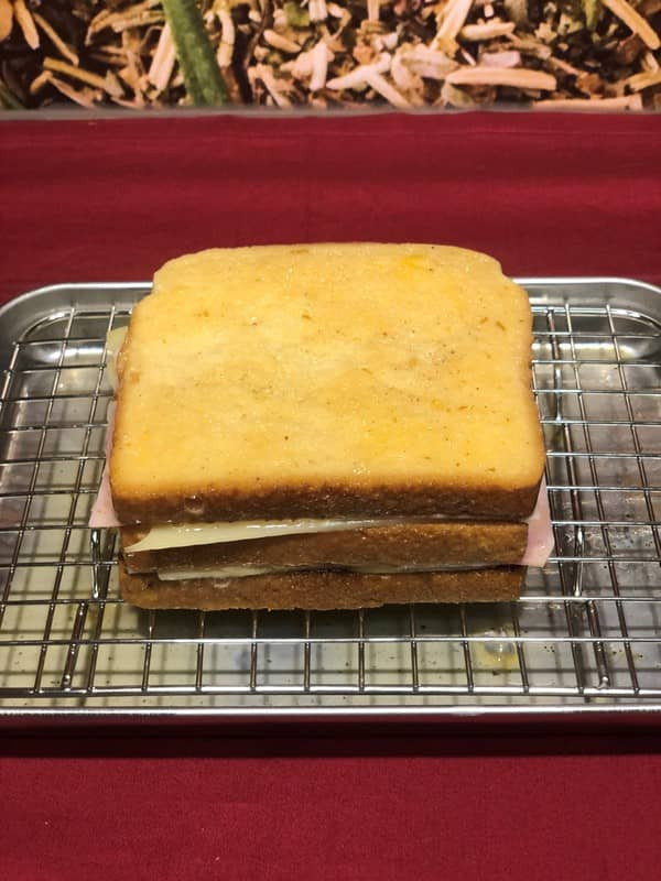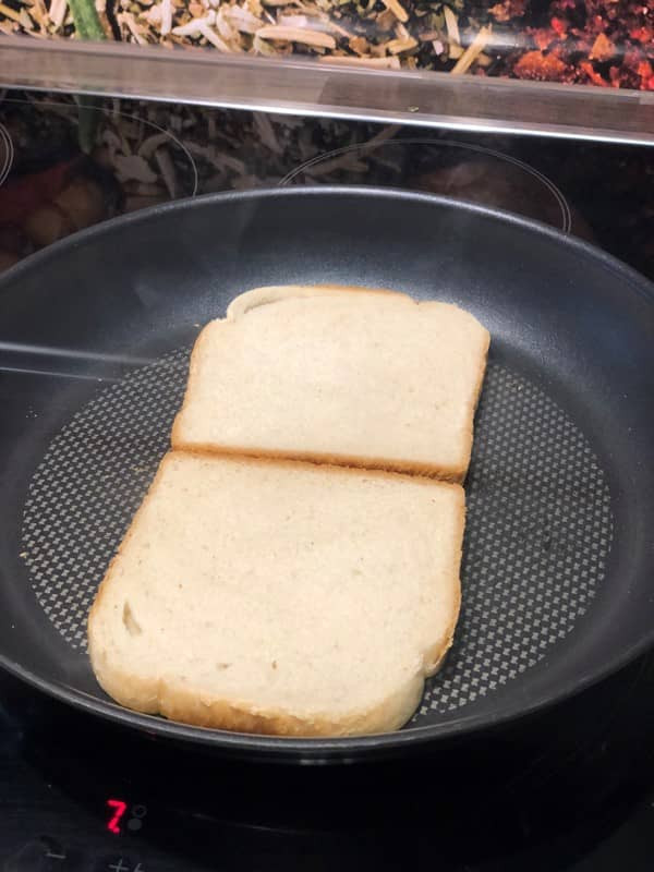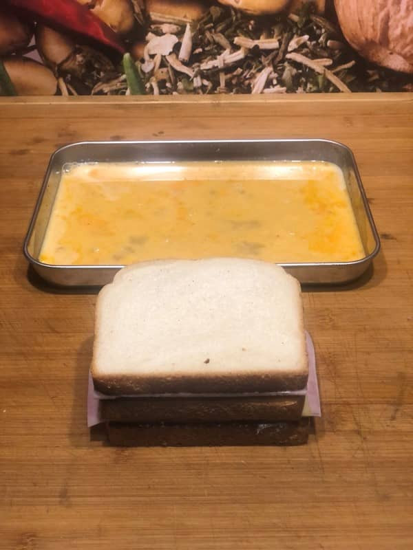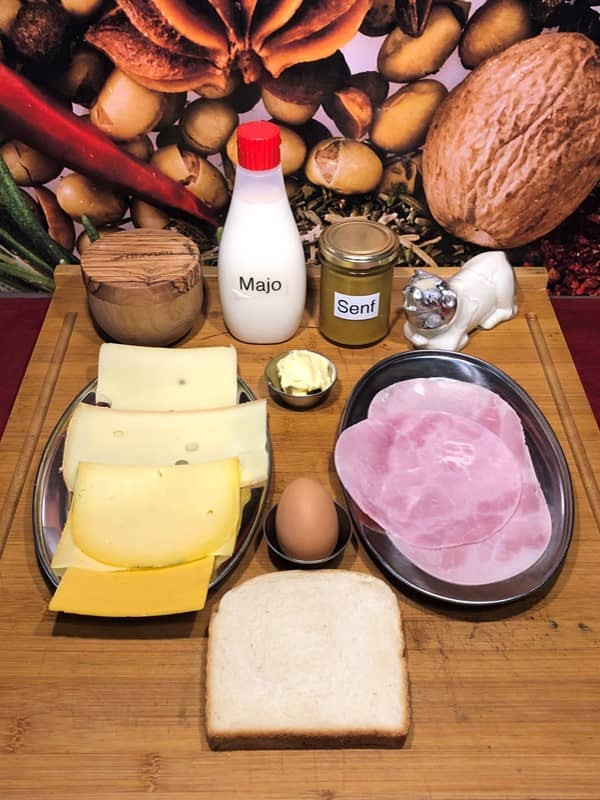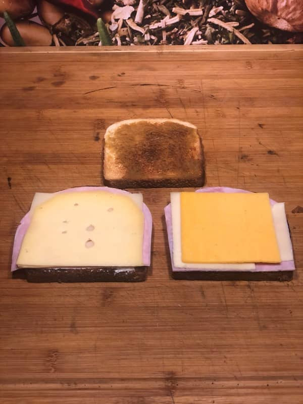 - Schinken und Käse auf die Maße des Toasts anpassen