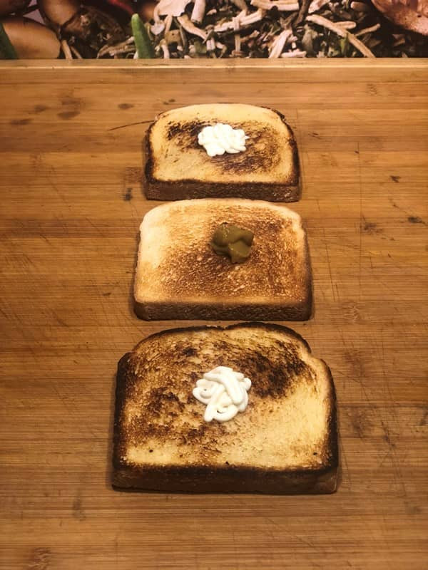 - Die restlichen auf der angebratenen Seite mit Mayo einstreichen