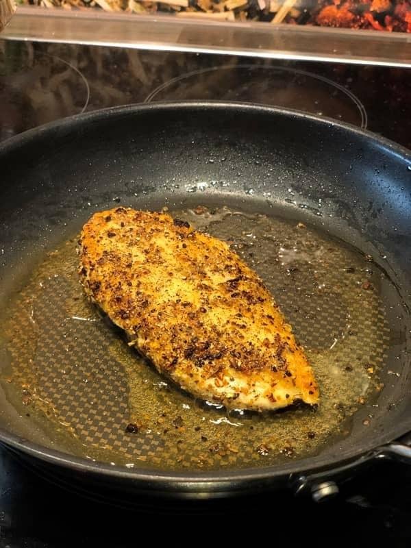 - Hähnchenbrust mit Hähnchengewürze und Salz/Pfeffer würzen