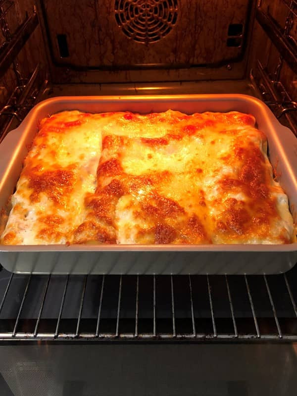 - Wenn der Käse goldbraun ist Lasagne raus nehmen