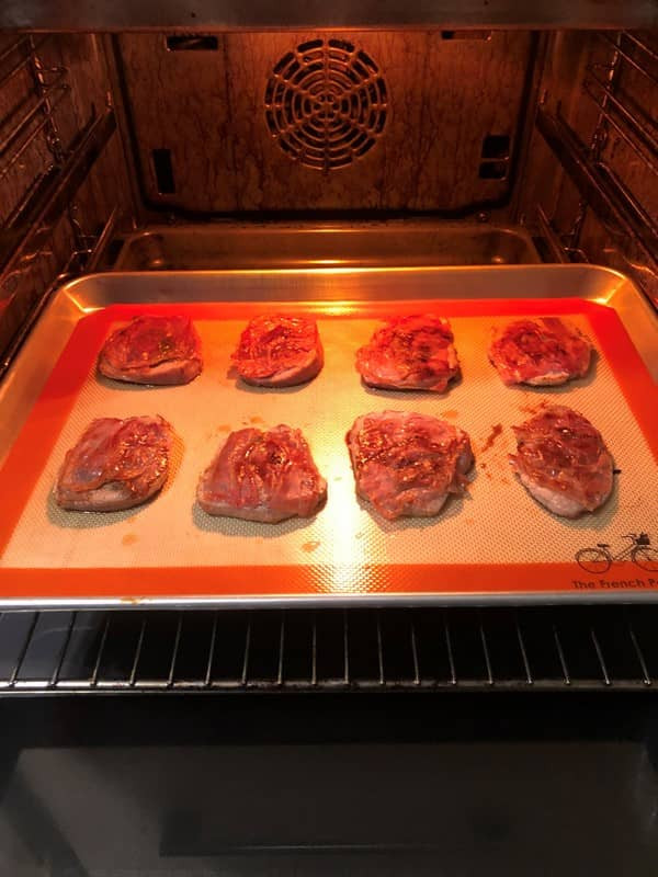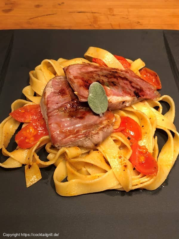 - Nochmal 2-3 Minuten anbraten und bei 60 Grad auf einem Teller im Ofen warmstellen