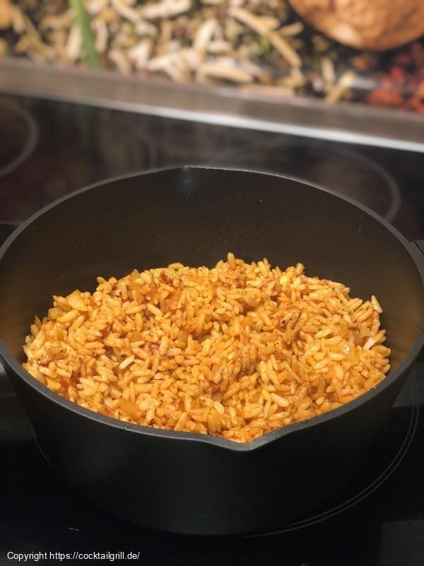 - Tomatenmark kurz mit anbraten und Reis dazu