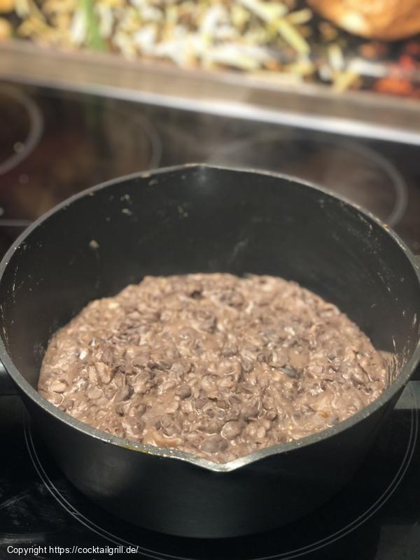 - Etwas Bohnenflüssigkeit dazu und einköcheln