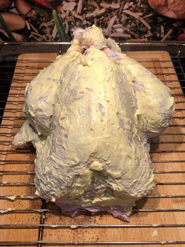 - Truthahn von oben und seitlich mit weicher Butter einreiben