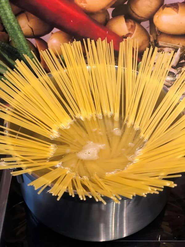 - Wasser aufkochen, salzen und Spaghetti hinein