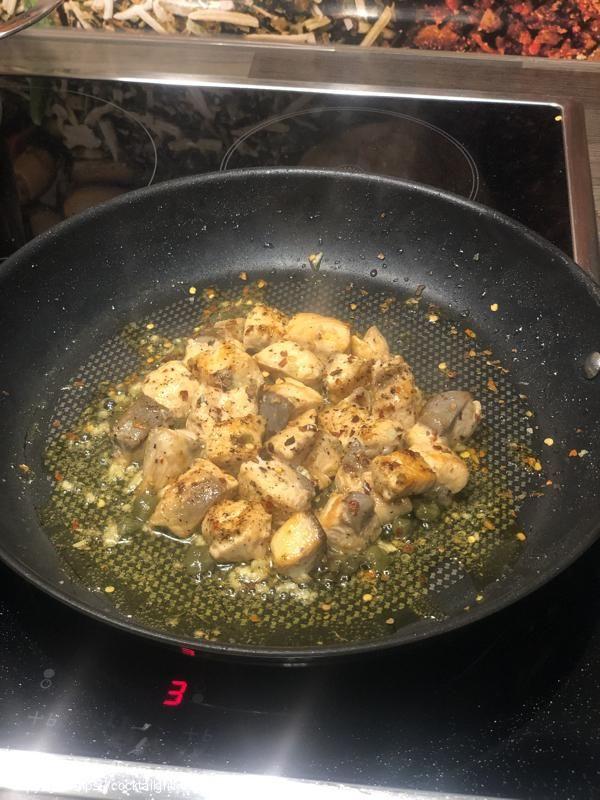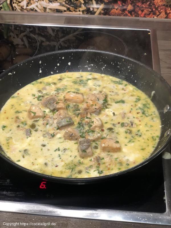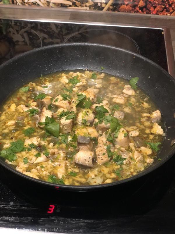 - Chiliflocken, Kapern und Zitronensaft dazu geben