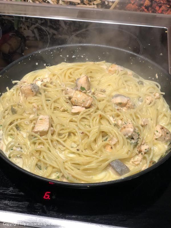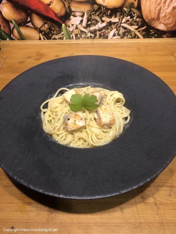 Inspiriert von Vincentsos Plate. "Spaghetti Salmone" ist ein delikates Pastagericht. Saftiges Lachsfilet wird mit Knoblauch, Zitrone und Kapern in Olivenöl angebraten. Die al dente gekochte Spaghetti werden zur mit Mascapone verfeinerten Sauce geben, wodurch ein leichtes und dennoch geschmacksintensives Gericht entsteht.