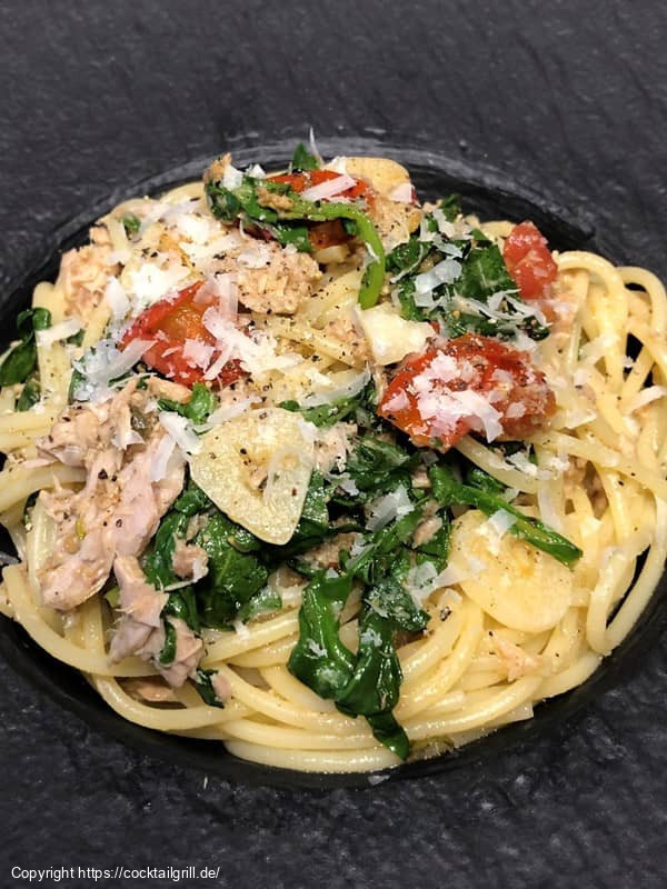 Inspiriert von Gennaro Contaldo. "Thunfisch-Spaghetti" sind ein köstliches Pasta-Gericht. Spaghetti werden mit einer Sauce aus Thunfisch, Tomaten, Olivenöl, Knoblauch und Kräutern zubereitet. Diese einfache Kombination verleiht den Nudeln einen herzhaften, mediterranen Geschmack und ist eine beliebte Wahl für Fischliebhaber.