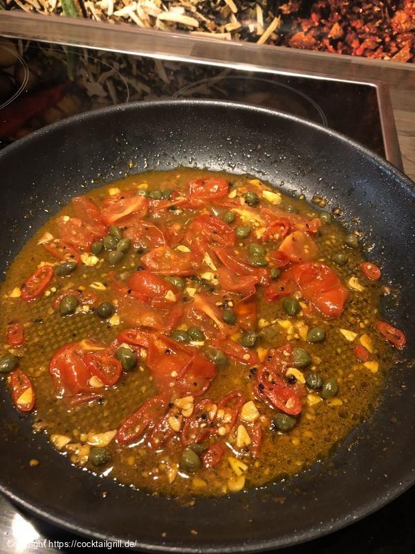 - Eine Kelle Nudelwasser dazu geben und einkochen