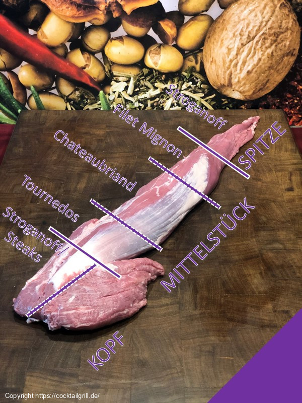 Die "RINDERFILETKUNDE" erklärt das edelste und zarteste Teilstück vom Rind, das sich durch seine feine Struktur und fettarme Beschaffenheit auszeichnet. Es liegt im inneren Rückenbereich des Tieres und wird wegen seiner besonderen Zartheit geschätzt. Das Fleisch ist besonders saftig und hat einen milden, hochwertigen Geschmack. Rinderfilet eignet sich hervorragend für elegante Gerichte wie Filetsteaks, Chateaubriand, Tournedos oder Filet Wellington. Durch seine zarte Konsistenz benötigt es nur kurze Garzeiten und kann sowohl in der Pfanne gebraten als auch im Ofen zubereitet werden. Perfekt auf den Punkt gegart, bleibt es innen rosa und zart. Wegen seiner Exklusivität gehört Rinderfilet zu den begehrtesten und teuersten Fleischsorten.