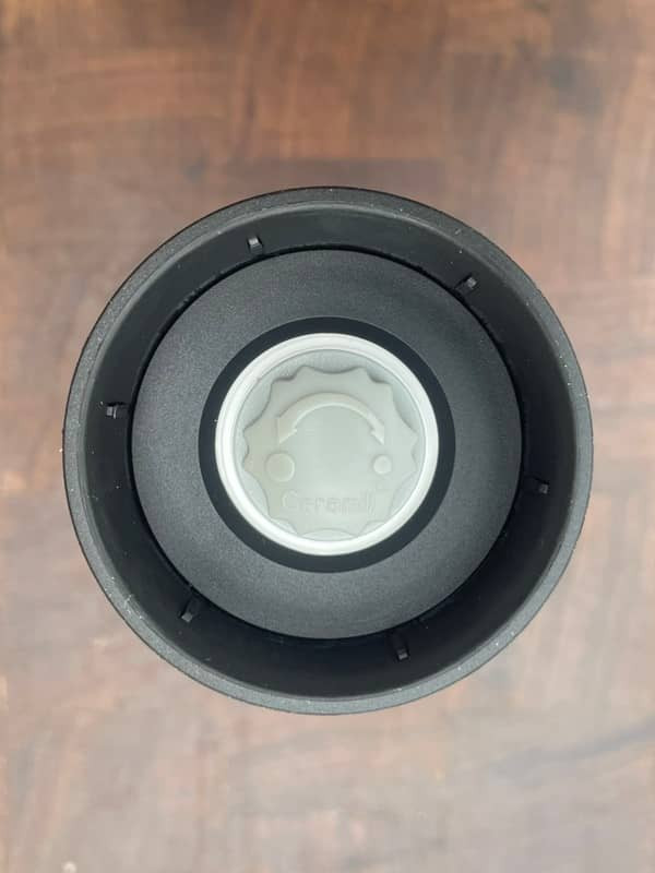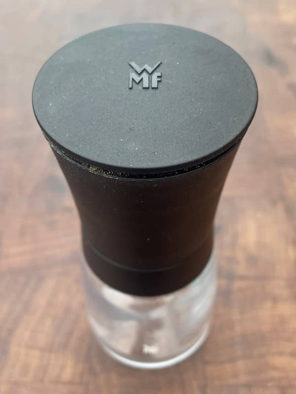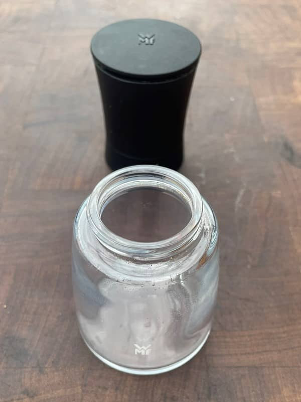 - Pfefferkörner, grobes Salz, etc. in die Mühle füllen