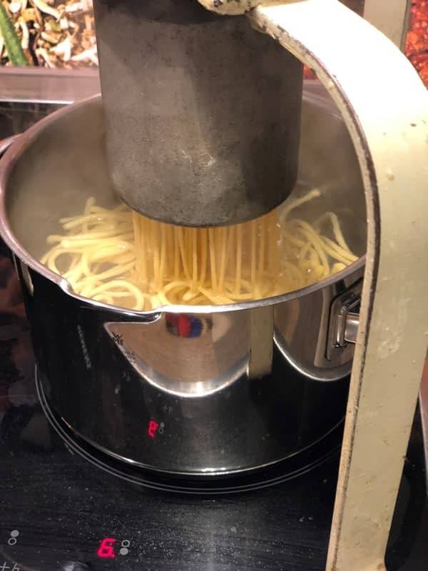 - Den Teig gerne nach diesem "Rezept" herstellen und durch die Maschine kurbeln